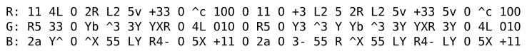 {*Script: Triband Native; *Comment: This is an electromagnetic language. The Triband Native script is read from right to left in vertical lines, three lines at a time.}